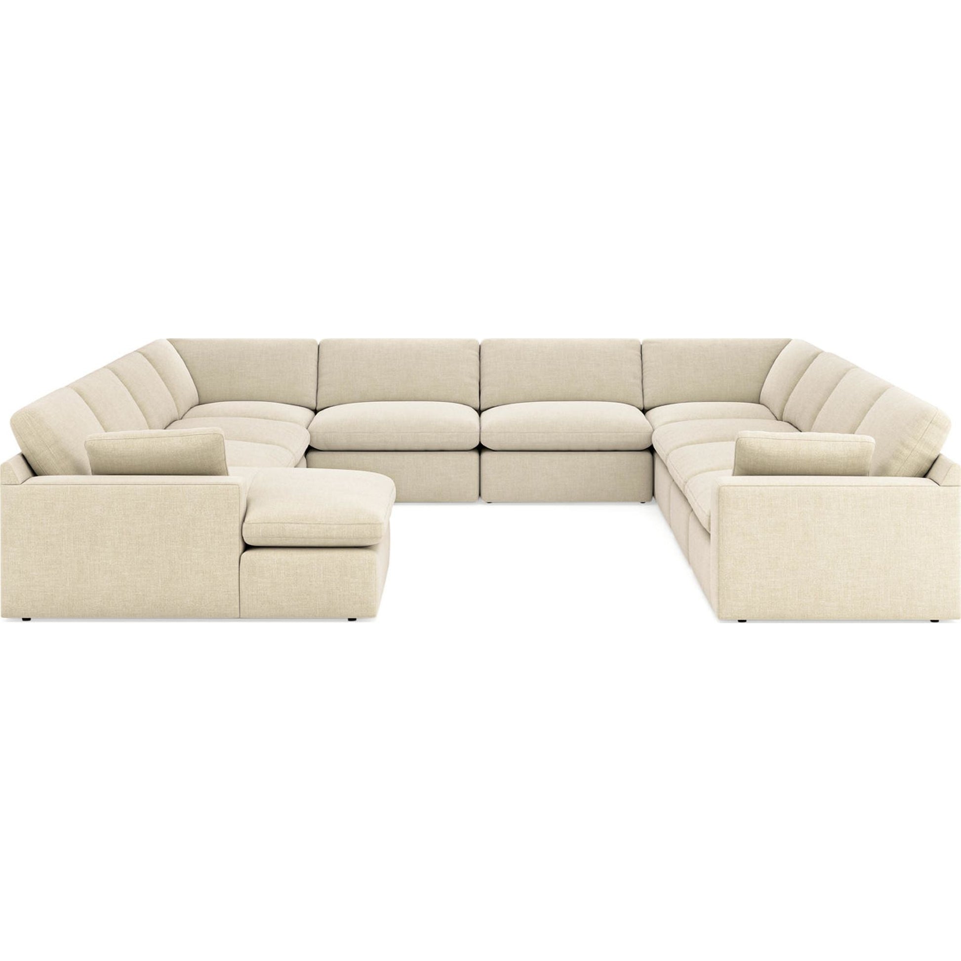 Down with uptown style. This sectional goes to town with a high-design aesthetic, sleek sophistication and sumptuous comfort that are temptingly affordable. Wide track arms, softened by plush side pillows, offer a welcoming look and feel, while back pillows and seat cushions with fluffy feather fill bring added flair and indulgence. Best of all, the modular design lets you stage the pieces solo or group them in various configurations to suit your mood.